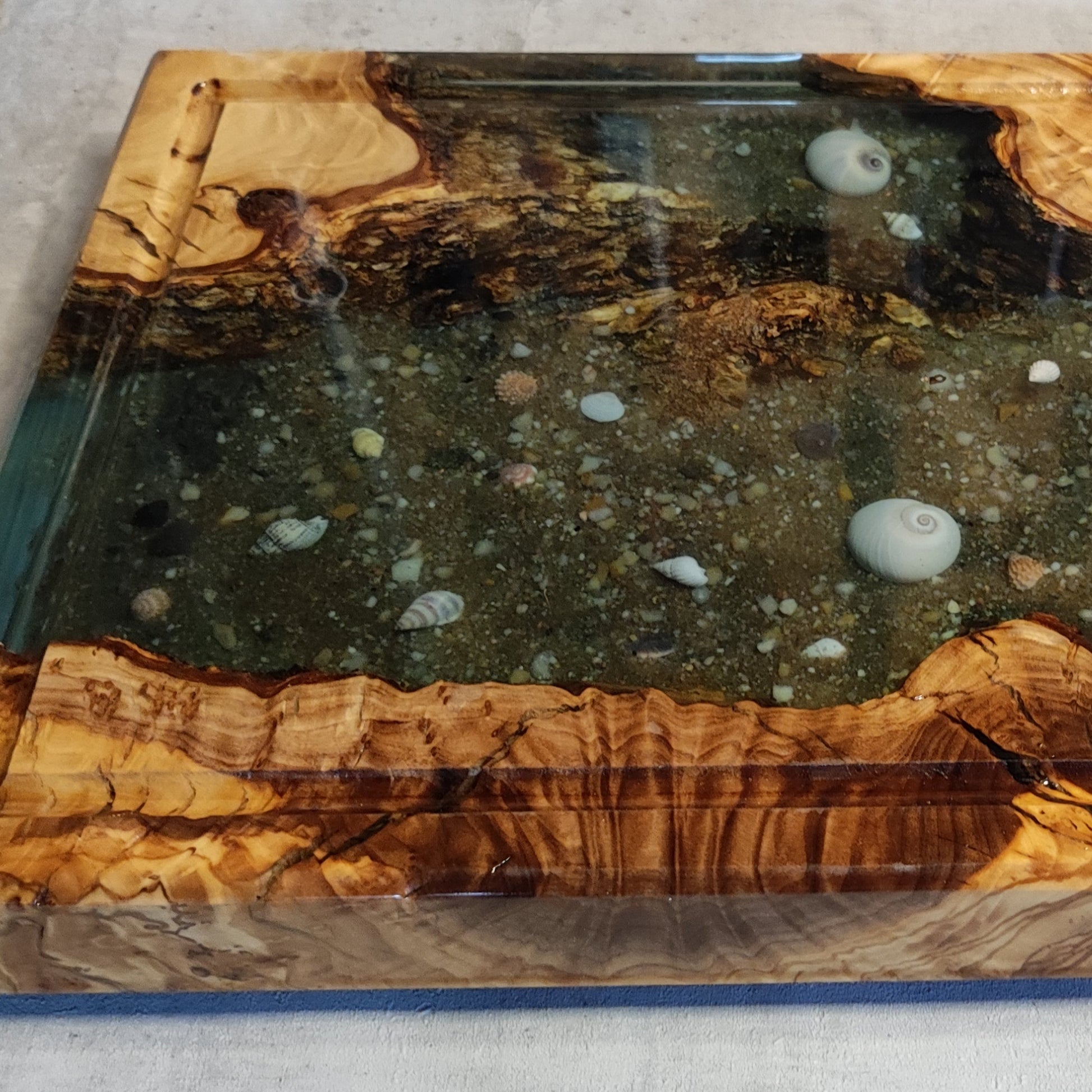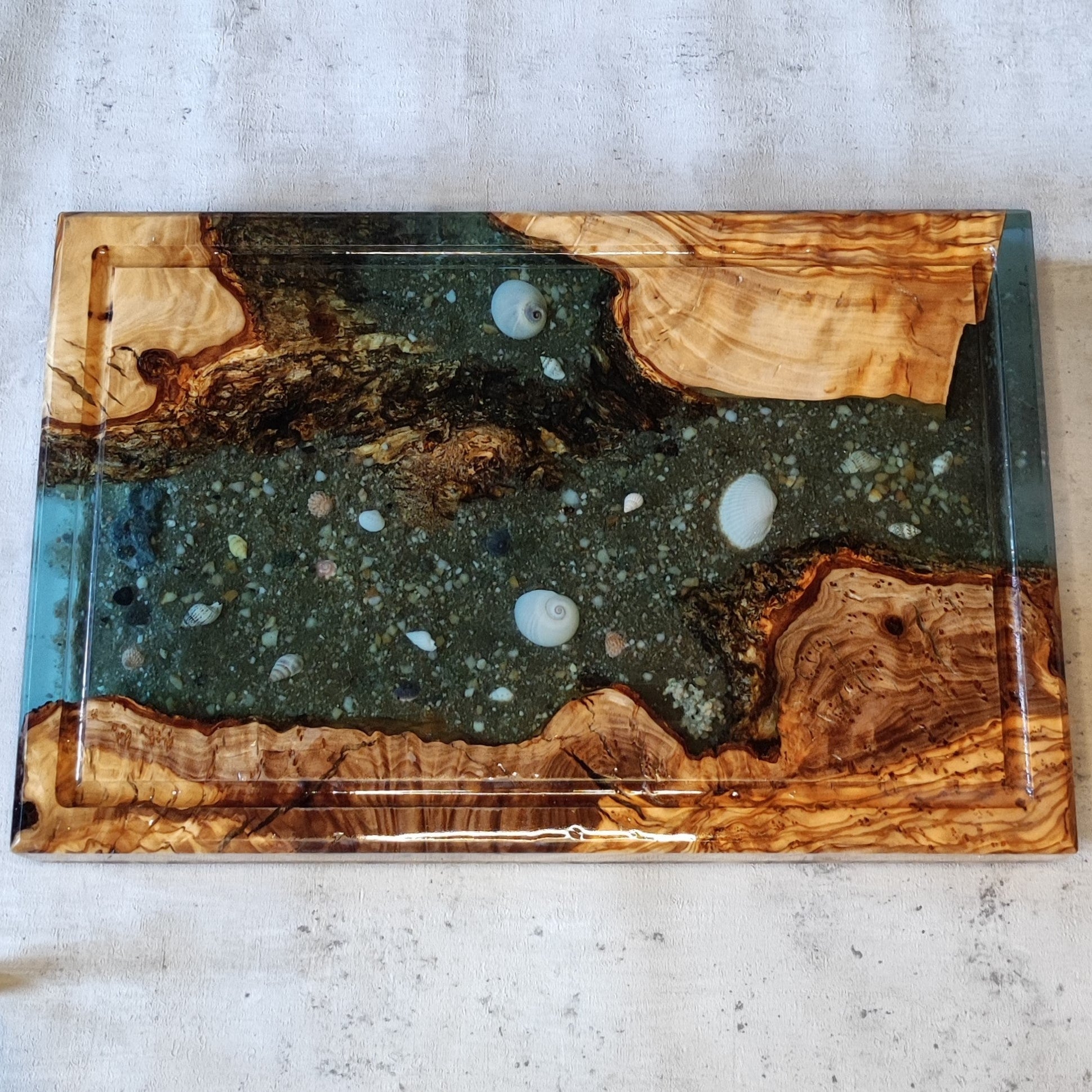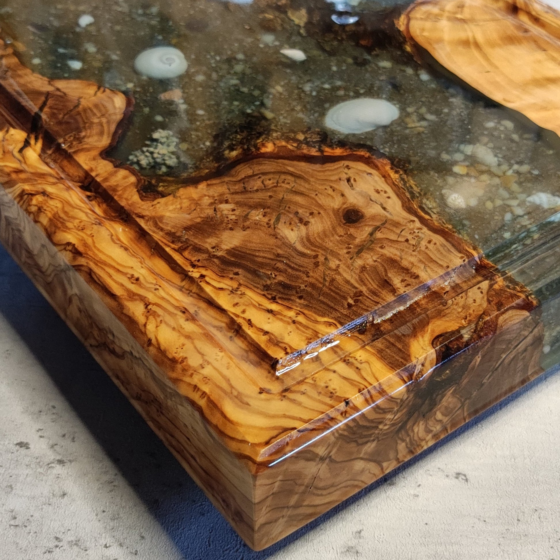 Jedes Brett ist ein handgefertigtes Unikat mit individueller Holzmaserung und einzigartiger Harzstruktur.